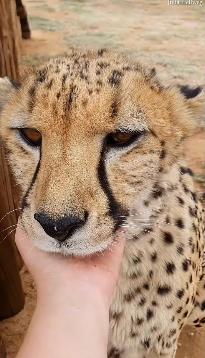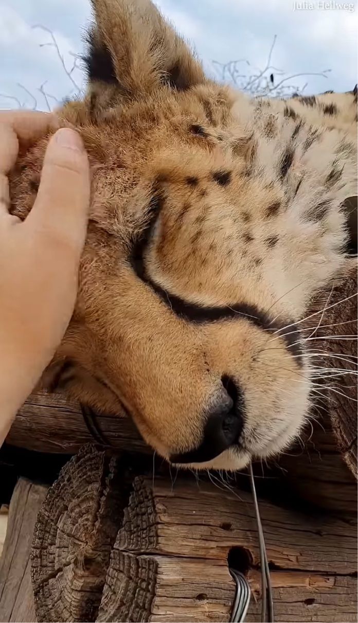 ゴロゴロと喉を鳴らしながら、撮影者さんになでなでしてもらうチーター。 まるでイエネコのような甘えん坊な姿に驚くと共にほっこりします!