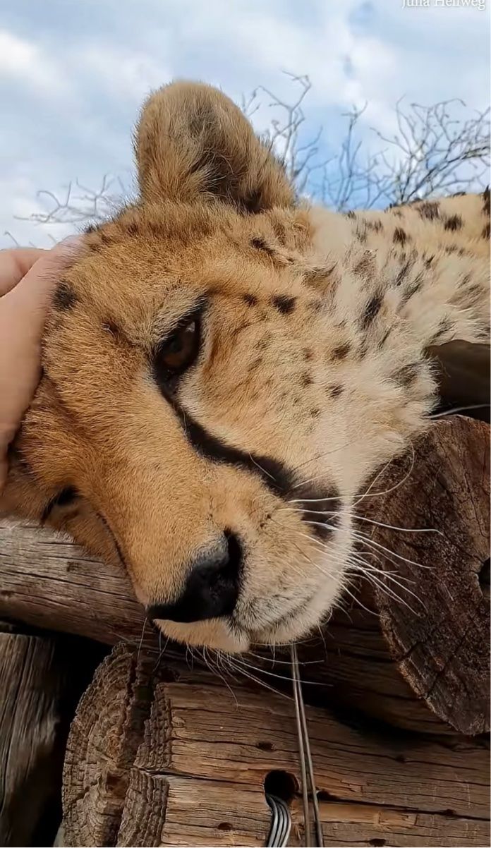 頭だけでなく、顎をワシャワシャしてもらうのもお気に入りみたいです。 人懐っこくて甘えん坊、そんな一面を見せてくれるチーターがいることに驚きです。