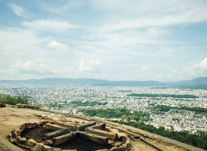 身近に登山ができる<大文字山> 比叡山から稲荷山まで連なる東山三十六峰の一つで、標高は465m。毎年8月16日には五山の送り火が行われ、「大」の字が灯ることでも知られる。登山ルートのうち、最もポピュラーなのが銀閣寺ルートで火床までは50分ほど。京都御苑や下鴨神社、平安神宮の大鳥居や京都タワーから、京都の街を囲む山々までを一望の下にする景色は圧巻だ。小嶋さんが登るのは地下鉄蹴上駅に近い日向大神宮から、山頂を越え火床に下りる蹴上ルート。こちらはの所要時間は2時間ほど。