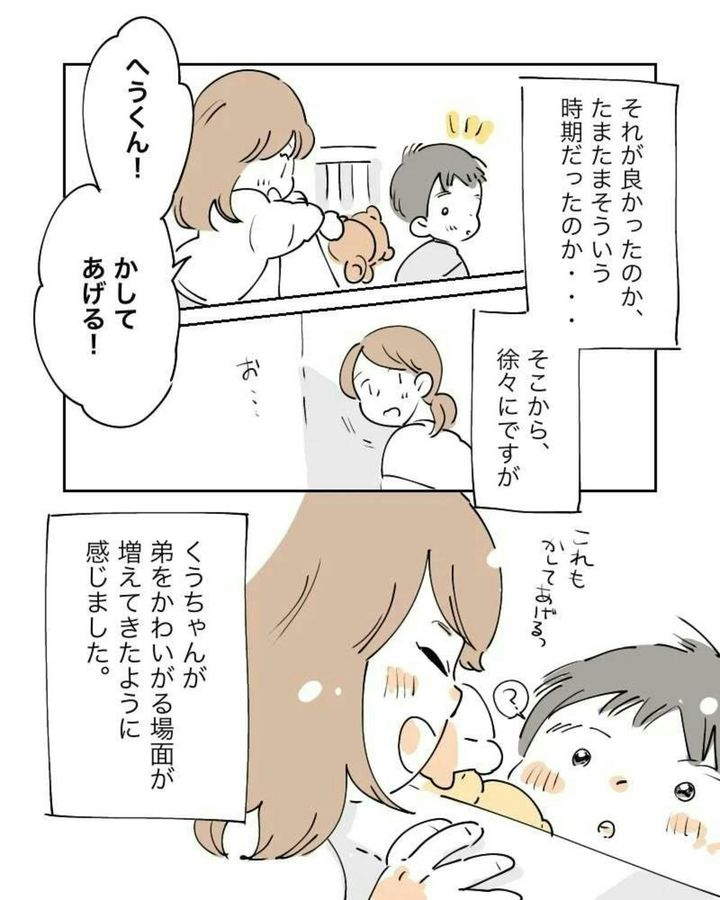 ママ友が「絶対なる」と言った通り、きょうだいで仲良く遊べることが増えました!今回も、くうちゃんの成長がきっかけでした。