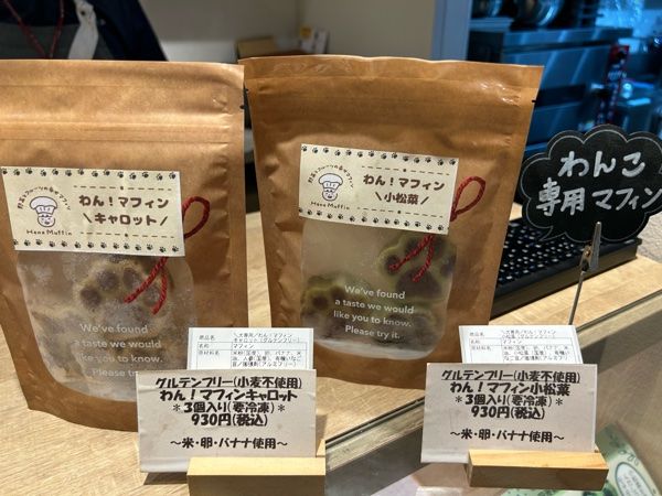 また、ワンちゃん専用のマフィンも冷凍販売しています。こちらも保存料・着色料不使用なので、愛犬家の皆さまも一緒にごほうびおやつを食べることもできますね。