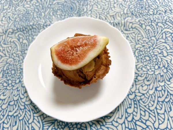 いちじくとクリームチーズのマフィンは大きくカットした生のいちじくをトッピングしたインパクトのあるビジュアルで、中に入っているドライいちじくがプチプチと楽しい食感のおいしさです。