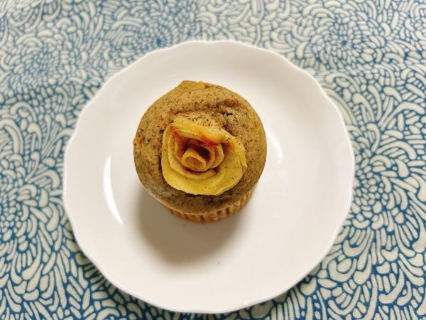 そして定番人気商品のアップルマフィンはバラの花が咲いたような、食べてしまうのがもったいない美しさです。こちらはアールグレイの茶葉とシナモンの入った相性抜群の間違いないおいしさでした。