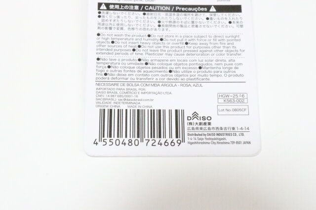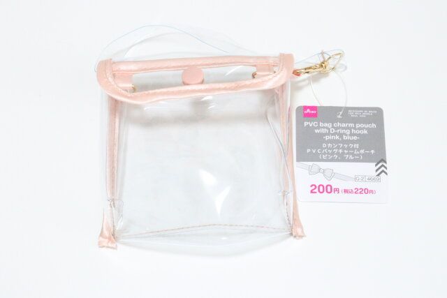 今回は、ダイソーの『Dカンフック付PVCバッグチャームポーチ(ピンク、ブルー)』をご紹介しました。