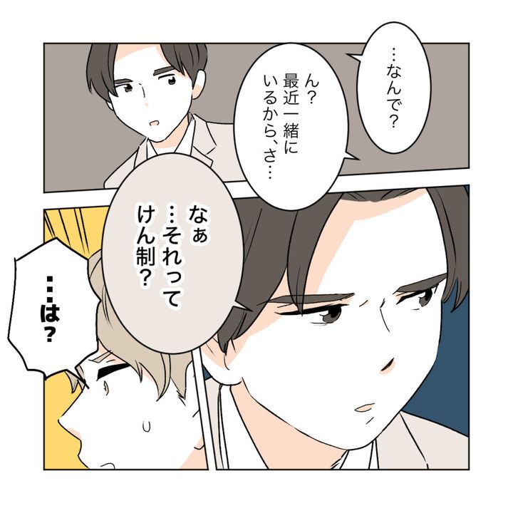少し沈黙をおいて「なんで?」と即答しないワタル。「ん?最近一緒にいるから、さ。」と、ただの興味を装って答えたショウマでしたが、「なぁ・・・それってけん制?」といぶかし気な顔でショウマを見るワタルに思わず「・・・は?」と驚いたショウマです。