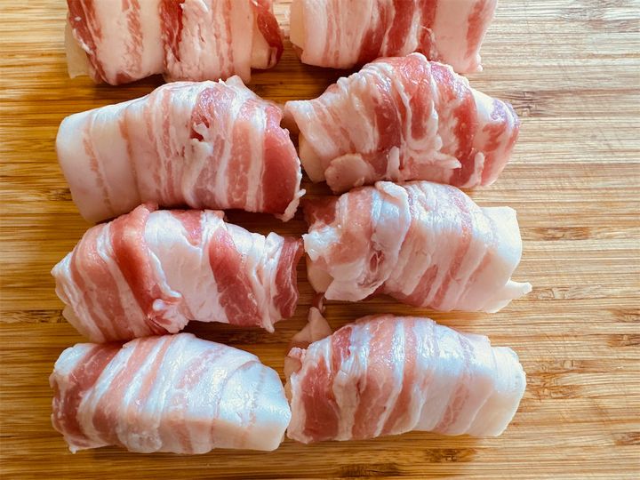 梨の表面がほぼ豚肉で覆われていますね(笑)。横からチラッとだけ梨が見えます。