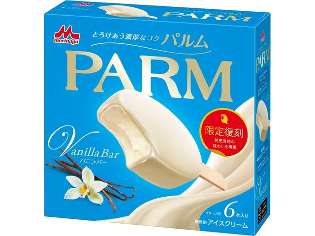 ① 2005年発売当時の味わいを再現したバニラバーを期間限定で復刻発売します。 ② 濃厚でなめらかな味わいのバニラアイスを口どけの良いホワイトチョコでコーティングしました。バニラ香る、コク深く本格的な味わいが堪能できます。 ③ パッケージは表裏で復刻版と通常版をデザインし、異なる表情が楽しめます。