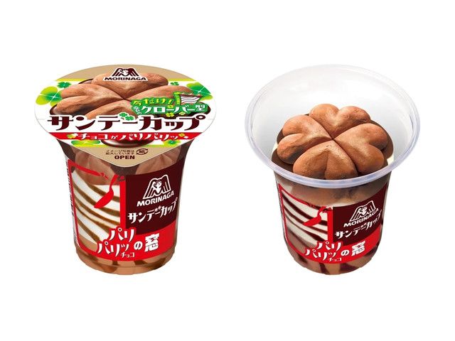 「サンデーカップ」は、チョコアイス、バニラアイス、パリパリチョコと食べ進めるごとに変化する味わいと食感が楽しいパフェアイスです。また、アイス上部のケーキのようなデコレーションや、パリパリチョコとバニラアイスの美しい縞模様といった可愛い見た目も特長の一つです。
