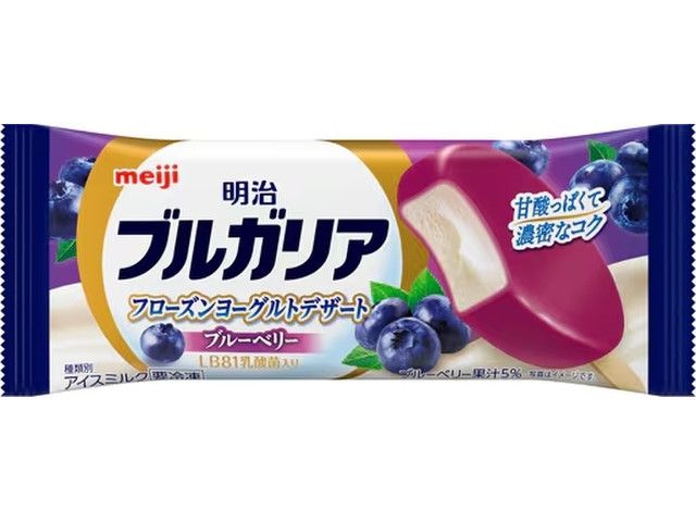 独自に開発したアイス専用のヨーグルトを混ぜ込んだ、なめらかで濃厚なコクが味わえるアイスを、甘酸っぱいブルーベリー果汁ソースで包み込みました。ヨーグルトベースアイスは、明治独自のLB81乳酸菌※1で発酵させることで、後味のすっきり感を実現しています。さらに低温でフリージングすることで、なめらかな食感を実現しました。「明治ブルガリア フローズンヨーグルトデザート」最大の特長である、なめらかでコクのあるヨーグルトを混ぜ込んだアイスの味わいと、甘酸っぱいブルーベリー果汁ソースが織りなす絶妙な甘みと酸味のバランスをお楽しみいただけます。 ※1 ブルガリア菌2038株とサーモフィラス菌1131株を組み合わせた乳酸菌