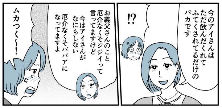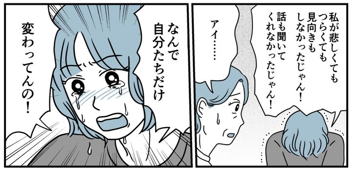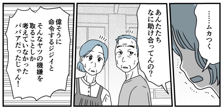 それなのに年老いた父と母は、お互いに気遣って助け合うようになりました。まるで今までの歪んだ主従関係がなかったことになっているみたいです。私はなかったことにできないのに! 両親の姿を見たら我慢ができなくなり、私は思わず感情をぶつけたのでした。