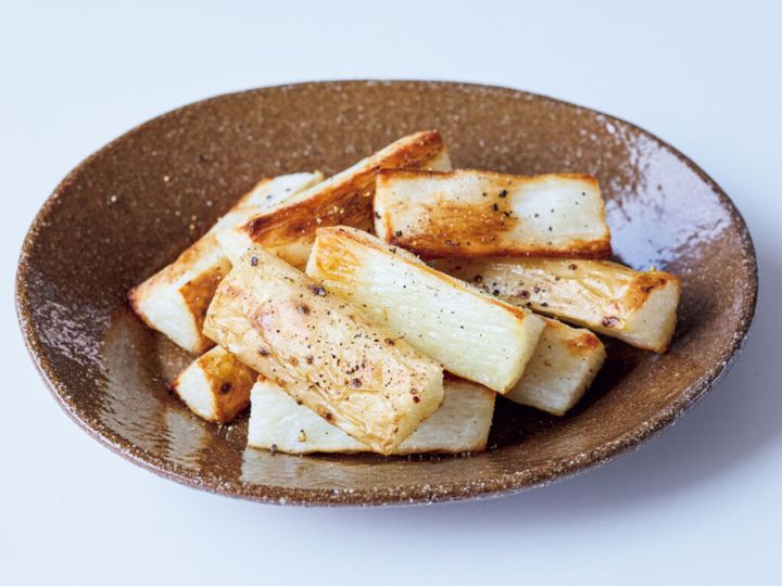 外はこんがり、中はほっくり。オイルをまとわせて焼いた長いもは、まるで軽やかなフライドポテトのよう。