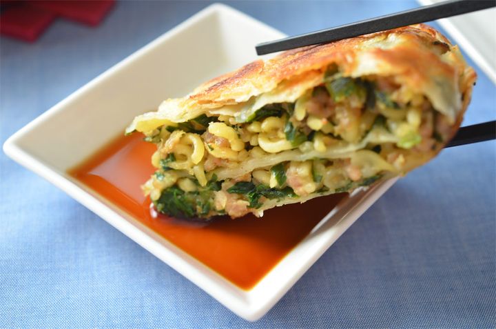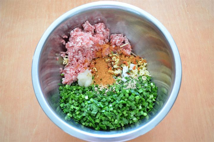 今まで餃子の具に色々入れてきましたが、麺(しかも、袋麺を砕いたもの!)を入れる発想は思いつかなかったな~。