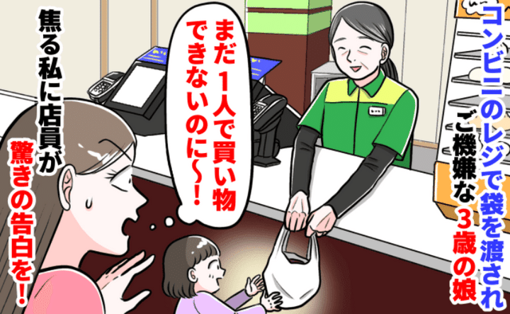 3. レジで店員さんから袋を渡される3歳の娘「お金持ってないのにどうやって買ったの!?」まさかの真相が
