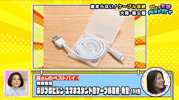 こだわりスイーツで至福のひと時を過ごしていた女性のベストバイは、無印良品のポリプロピレンスマホスタンド付ケーブル収納。たった190円で、コードが絡まるイライラを解決してくれます。ちなみに、彼女が「Instagramで見ていておいしそう」ということで購入したのは、靭公園すぐ近くにあるパティスリー・Seiichiro,NISHIZONO(セイイチロウニシゾノ)のケーキです。