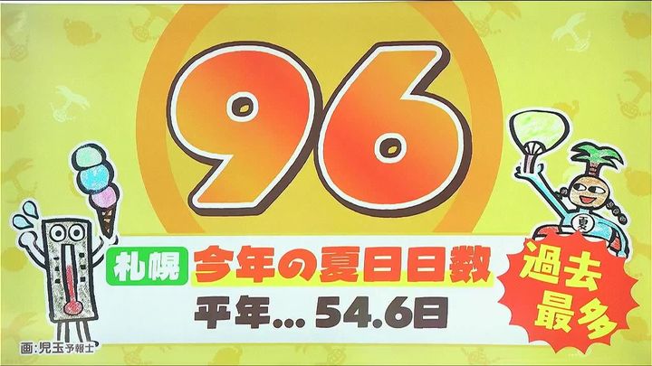 札幌の今年の夏日(最高気温25度以上)の日数でした。2年前に観測した91日を更新し、過去最多となっています。