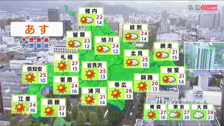 ・あすの札幌の朝昼晩の天気