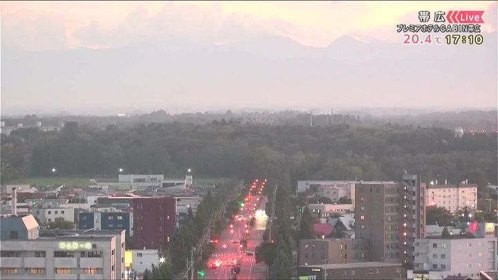 背景は2日午後5時ごろの帯広情報カメラ