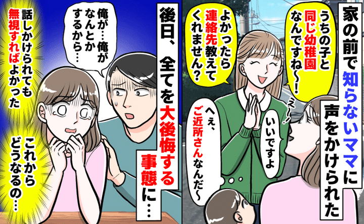 3. 「幼稚園一緒だ〜!」近所の知らないママに連絡先を共有。無視すればよかった…恐怖で大後悔した理由は