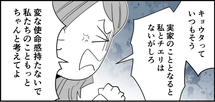 (こんなのおかしい……!)私とチエリの生活や将来を顧みずリンコさんを優先するキョウタの態度に、私は怒りがおさまりませんでした。