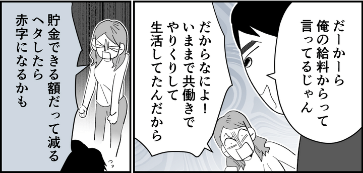 キョウタは自分の給料から出すと言い張りますが、家計は一緒。