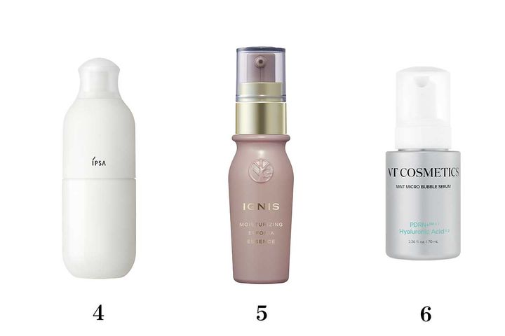 4.イプサ MEn1(医薬部外品) 175㎖ ¥7,370(ディスペ ンサー別売り) 5.イグニス モイスチュアライジング エフフォーリア エッセンス 40㎖ ¥13,200 6.VT PDRN+ ヒアルロン酸ミントマイクロバブルセラム 70㎖ ¥1,870 /VT COSMETICS