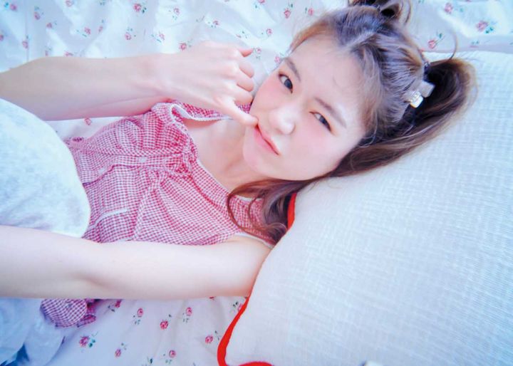 審良ふたば。ar9月号より カーディガン¥7,920/クランク(ハナ コリア) タンクトップ¥23,100、ショーツ ¥19,800/ナイスナイスモーメント(ショールームリンクス) ヘアクリップ¥17,380/52 kikis(ショールーム シャルメール)