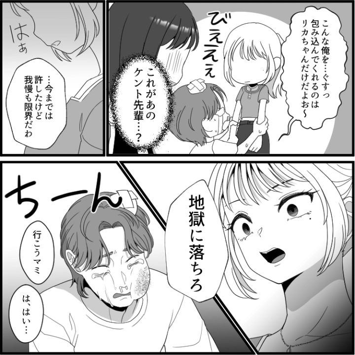 同じサークルのケント先輩に片想いしているマミ。しかし、ケント先輩は美人で有名なリカ先輩と仲が良いため、自分に自信がないマミは告白する勇気がなく、想いを伝えられずにいた。しかし、ある日突然ケント先輩から「体調が悪いので家に来て欲しい」と呼び出される。二つ返事で先輩のもとへ急ぐマミだったが、なんと自宅前で修羅場が発生する事態に!?