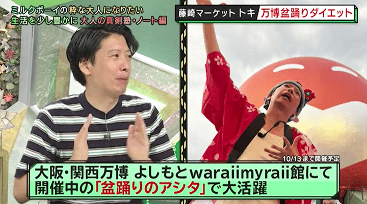 連日大賑わいのEXPO 2025 大阪・関西万博は、閉幕まであと約1週間。人気パビリオンの1つ吉本興業のパビリオン “よしもと waraii myraii館” では、盆踊りが毎日行われていることでお馴染みだ。吉本興業に所属する藤崎マーケットのトキは、連日の盆踊りでなんと体重が〇キロも減ったそうで……!?