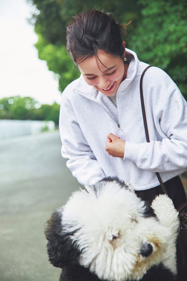 タイトスカートもパンツも、どんなボトムスとも相性がいいのも大きな魅力。スポーティなアイテムたちだけれど、上品な印象に。
