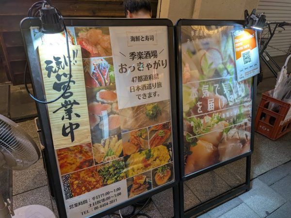 <大阪発>JR福島駅より徒歩4分。阪神本線福島駅より徒歩5分。JR大阪環状線高架下にある、「ふくまる通り57」の中にある「料理に自信あり、旨い魚とボリューム、安さが自慢」の海鮮居酒屋 海鮮と寿司「季楽酒場 おっきゃがり」をご紹介します。