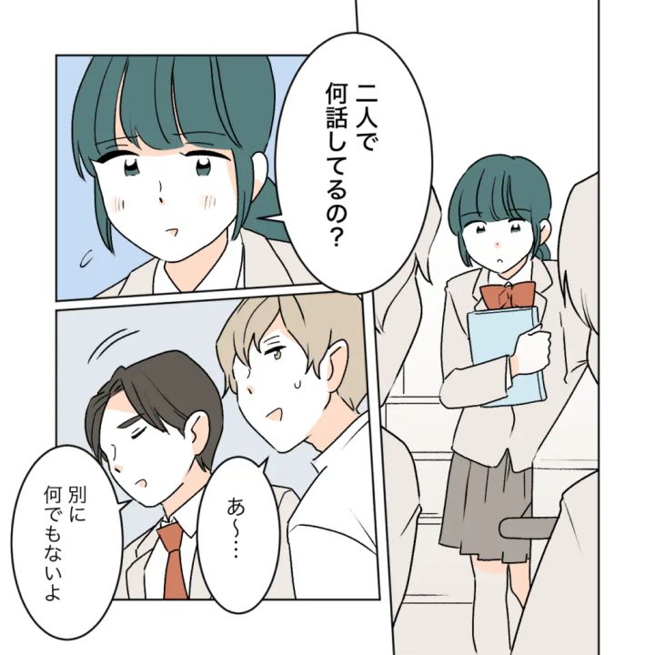 それはシズクでした。「2人で何話してるの?」と聞かれ、「あ~・・・」と口ごもるショウタと「別に何でもないよ」と言い捨てるワタル。