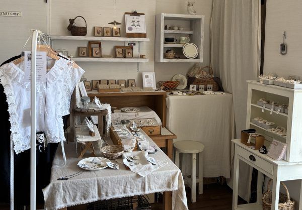 店内には、ハンドメイドのアクセサリーや、お洋服を販売しているスペースも。