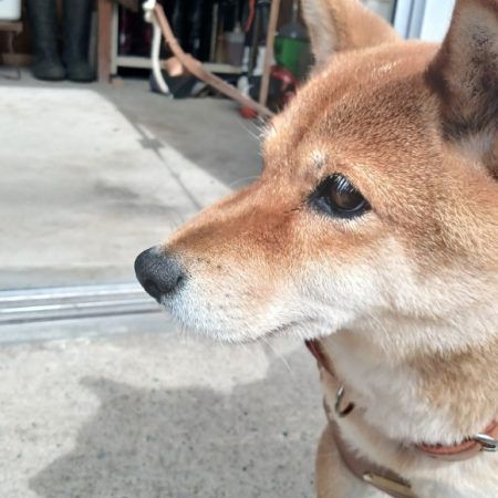 つぶらな瞳がキュートな看板犬のきなこさんです。おとなしくて吠えませんでした。人によっては吠えるのかな…