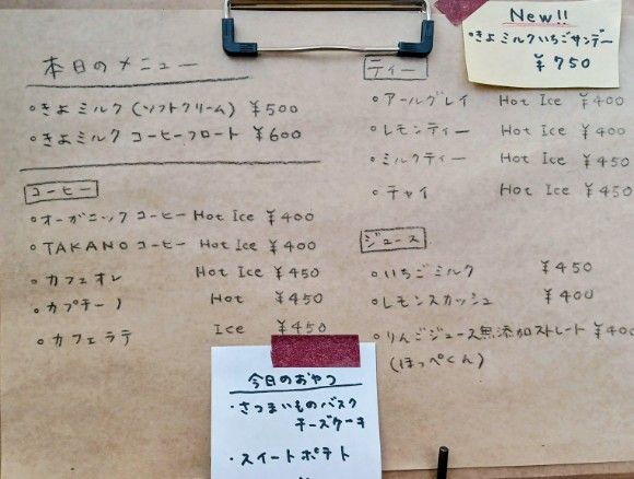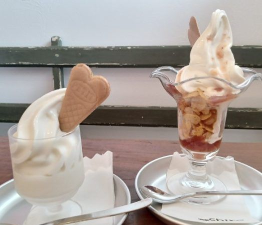左がきよミルク(ソフトクリーム)で右が新メニューのきよミルクいちごサンデーです。