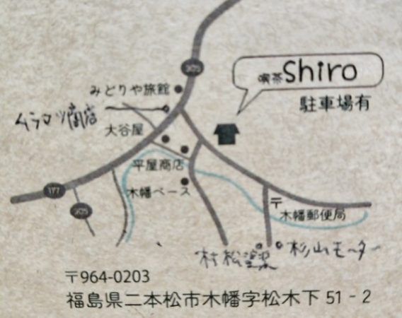 喫茶Shiro 二本松市木幡字松木下51-2 ●営業時間 11:00~16:00 ●定休日 不定休 ※informationに営業カレンダー有り ●駐車場 有り ●Instagram 喫茶 shiro(@shiro_kinakosan)