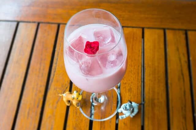今回のアフタヌーンティーにもれなくついてくるドリンク「aiboのいちごミルク」は、生のいちごピューレを使った優しい甘さのイチゴミルク。アフタヌーンティーの始まりにふさわしくバラの花が飾られた華やかなドリンクです。