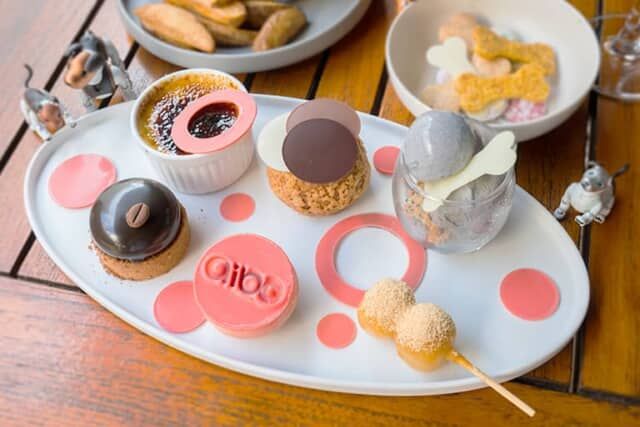 スイーツはaiboのデザインテーマ “サークル” をヒントに、全て可愛らしい丸い形で統一。さらにそれぞれのスイーツは限定カラーを元に作られていて、ファンには堪らないメニューです。とりわけスイーツのピンク色は、2022年のカラーモデル“いちごミルク エディション” がモチーフ。テーブルを可愛らしく彩ります。