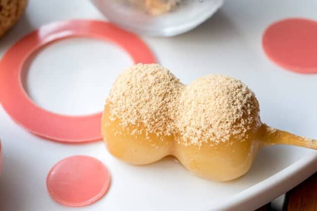2024年の “きなこ” は和のスイーツ「みたらし餡ときな粉のお団子」に。モチモチのお団子に甘辛いみたらしとたっぷりのきな粉がかかっています。