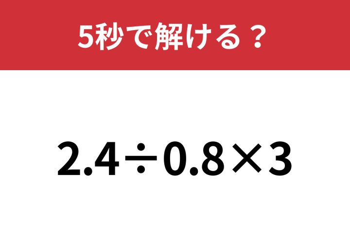 凡ミスに注意が必要!「2.4÷0.8×3」5秒で解ける?