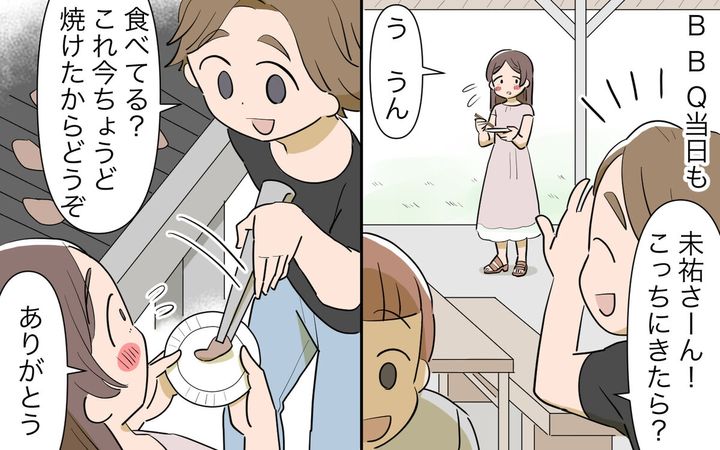 未祐は昔から人に声を掛けるのが苦手でした。そんなある日、新しく入園した彩美とBBQの買い出しなどをきっかけに仲良くなります。