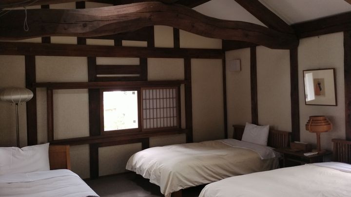 江戸時代から「健康の湯」として知られる、鹿教湯温泉の里山にたたずむ「三水館」。体あたりがやわらかい木作りの内湯と、長野県で採石される「柴石」の露天風呂からは、庭の紅葉を眺めることができる。泉温は41℃前後で、長湯にも最適。じっくり湯に浸かることで体の芯まで温まり、血行促進や神経痛にも効果を発揮する。自家農園で栽培した野菜を使った滋味溢れる田舎料理は、それを目当てに訪れる人も多いほど。秋は7〜8種の天然きのこを味わえるきのこ鍋を中心とした料理の数々が登場する。