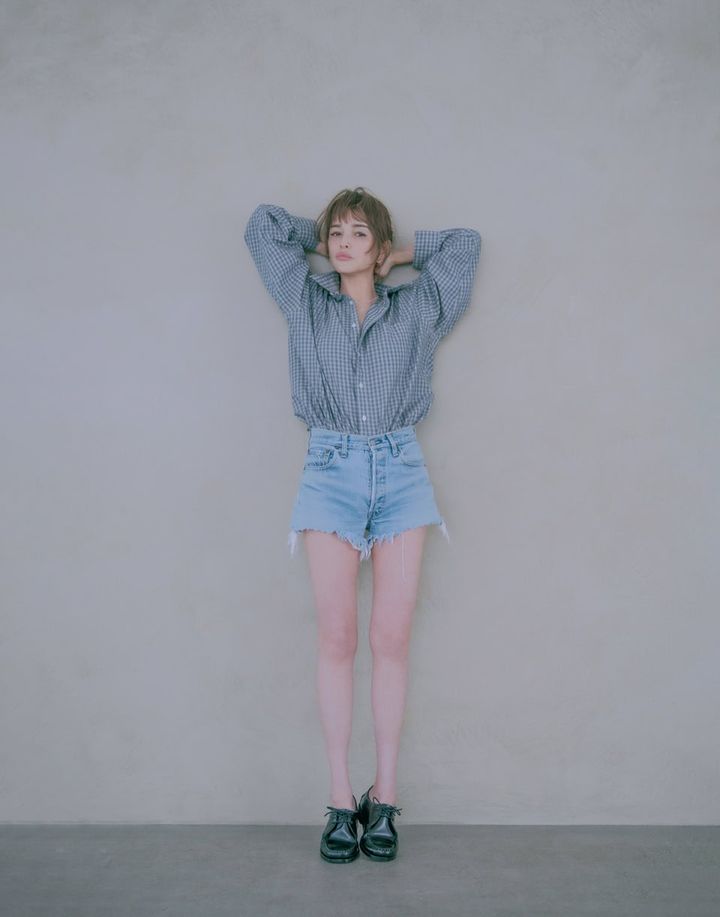 久々にデニムショーパンをはいた梨花。選んだのは腰まわりがタイトでピタッとしたヴィンテージの上質デニム。