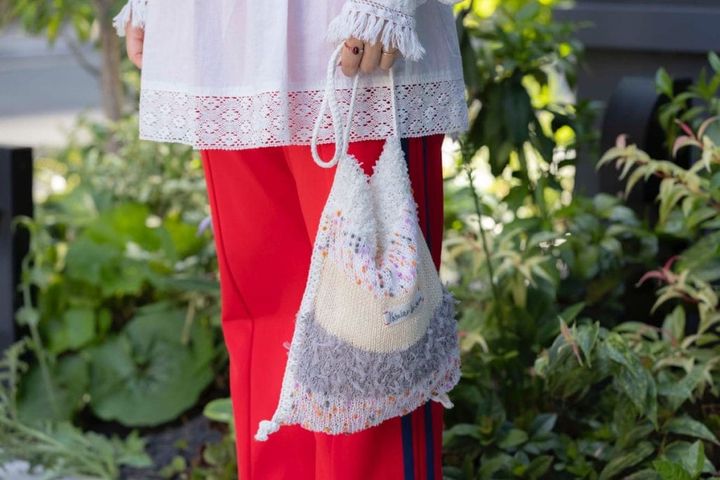 「いろいろな表情のファンシーヤーン使いがとにかくかわいい! 他にはない儚く個性のあるニットバッグでコーデのポイントになります」