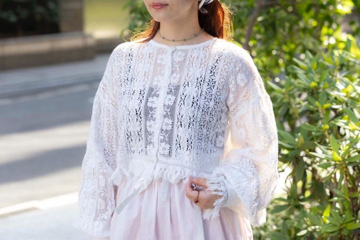 「ずっと大切に着たいと思わせるビンテージライクなレースのデザインが気に入っています。透け感のあるレース素材でオールシーズン活躍。短めの丈感で合わせやすく、さまざまな着こなしが楽しめます」