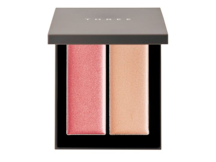 クリームからパウダーに変化するテクスチャーでヨレ知らず。ズボラさんも簡単!THREE シマリング グロー デュオ R 02 ¥4,950/THREE