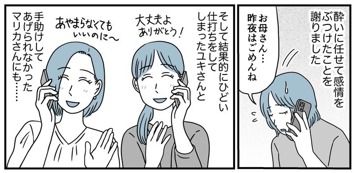 でも誰かのせいにしているだけでは、私も未来はくそババアです。両親は変わりました。今までの生き方を反省して、よりよい未来を考えているのだと思います。だから私も変わることにしました。憎しみにとらわれていたら幸せになれない。まだ両親を完全には許していないけれど、それでは私は成長できないと気付いたのです。マリカさんがかけてくれた率直な言葉が、私の背中を力強く押してくれたような気がしています。