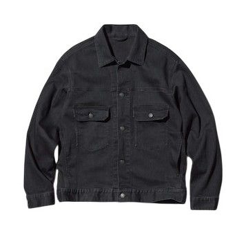 色やデザインに頼らずに見方を変えてメンズのアイテムにヒントを得てベーシックをアップデート。「まるでビッグシャツのようなシルエットはそで口をめくってインナーを見せたり、えりを立てて着たりとアレンジもしやすい形」(樋口さん) ダークグレーデニムジャケット(メンズ/Lサイズ)/UNIQLO
