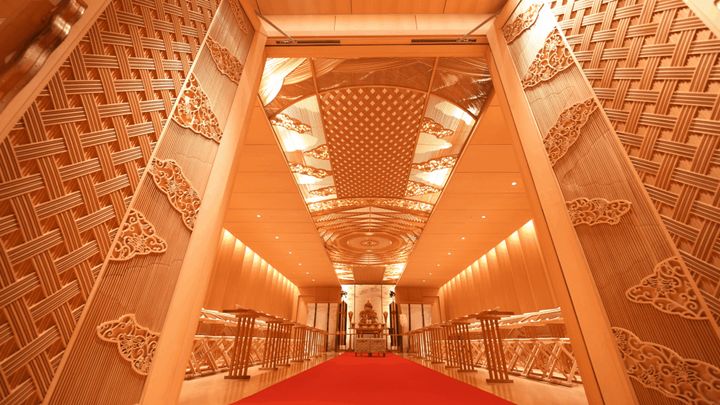 村山さんが初めて挑んだ「立体組子」の作品があるのは、東京の丸の内にある五つ星ホテル「パレスホテル東京」の結婚式場。格式高い結婚式場が組子で覆いつくされ、独創的で優美な空間を演出しています。この作品が評判を呼び、有名ホテルや高級レストランなどから依頼が舞い込むようになりました。