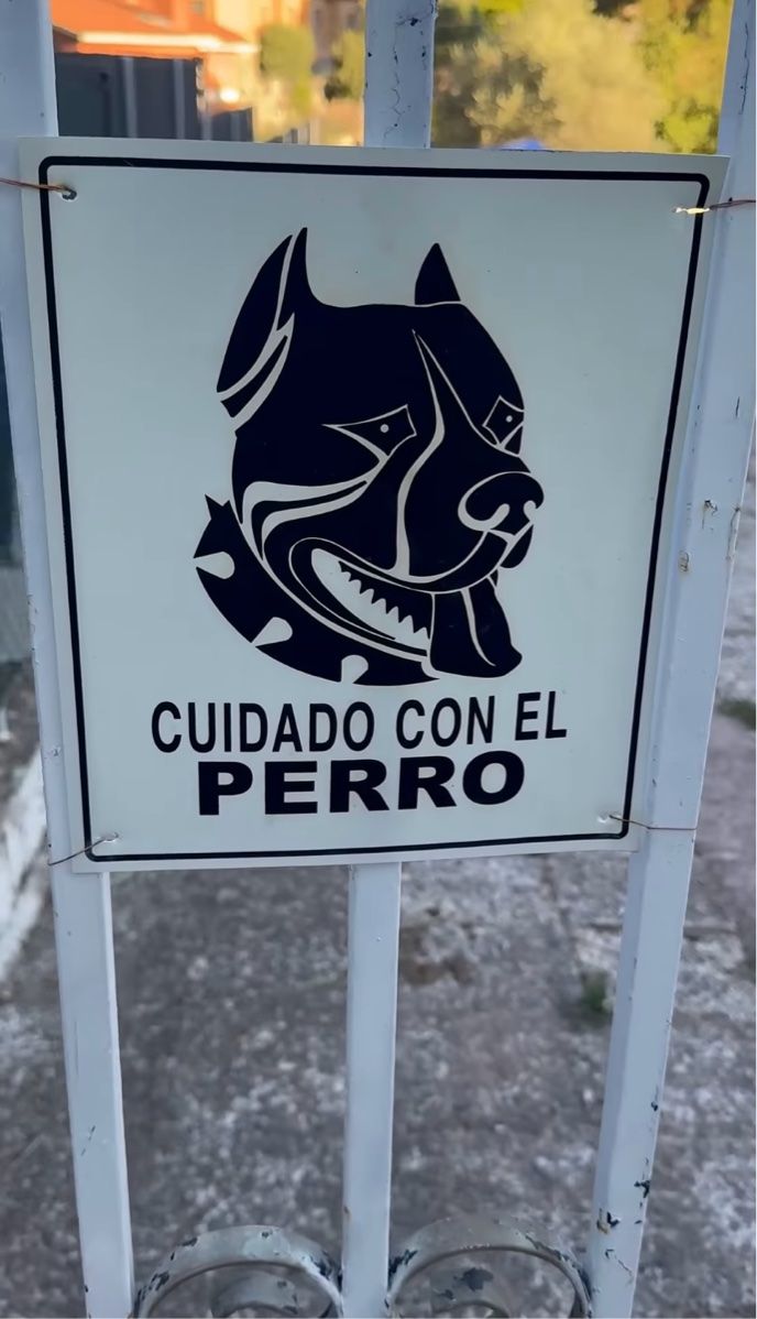 こちらのお宅の門に掲げられていたのは、『猛犬注意!』と書かれたプレート。 そのイラストからは、よく吠えるイヌなどがいるかのような印象を受けます。