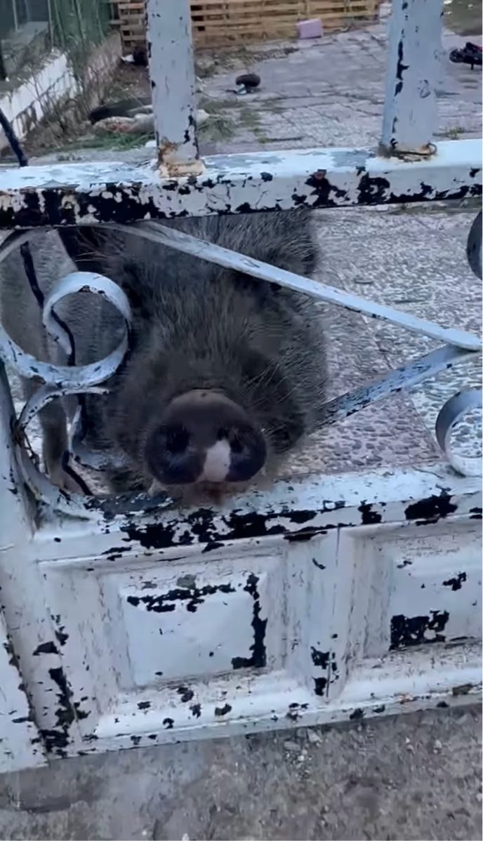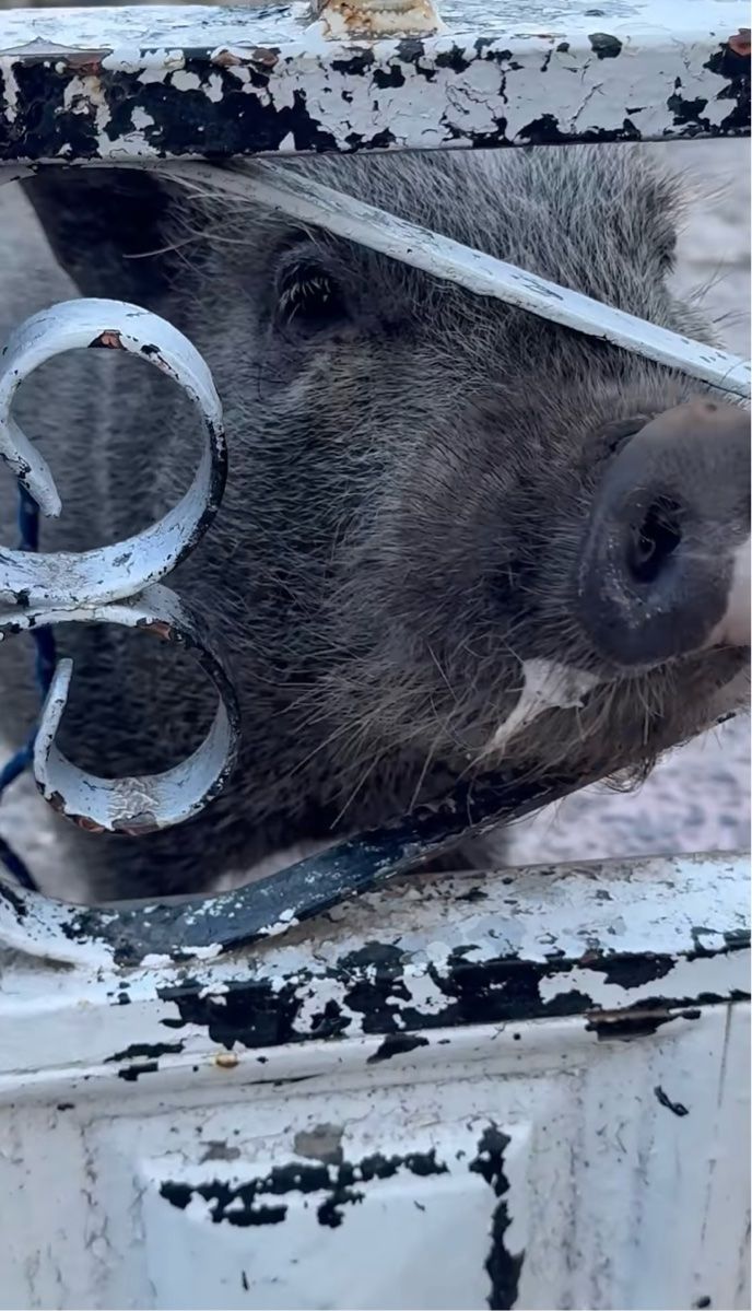 『猛犬注意!』の警告プレートの下にいたブタ。 見る人を和ませる予想外の展開は、こちらの動画からご覧いただけます。